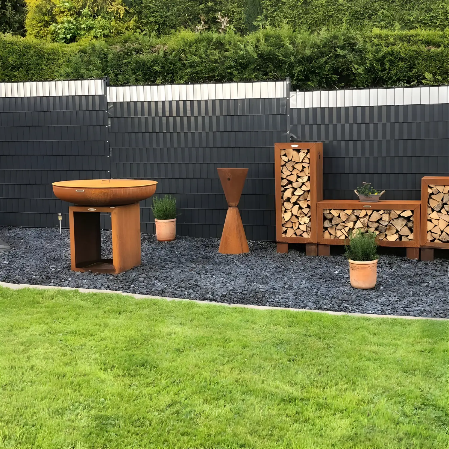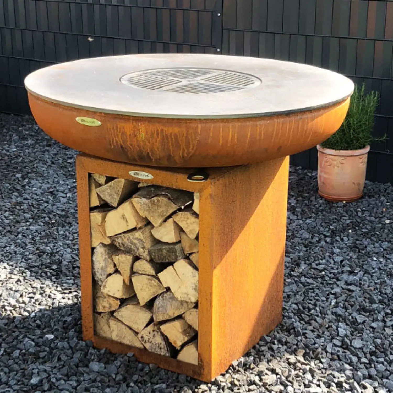 Vår store Carus L grillplate har et robust design med en romslig base. Denne er ideell for oppbevaring av ved. Det massive utseendet gjør den til et perfekt ildsted for enhver stor hage!