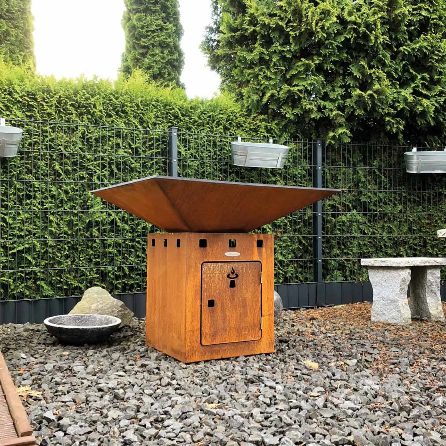 Bålgrillen Cube kjennetegnes av sin rene form, og den rause grillflaten inviterer til hyggelige grillopplevelser sammen.